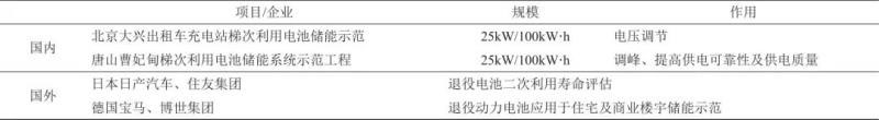 近年來我國科研機(jī)構(gòu)及相關(guān)企業(yè)也正在加速開展動(dòng)力電池梯次利用的研究與示范,具體見表1。例如出租車充電站梯次利用電池儲(chǔ)能示范,退役的電動(dòng)出租車動(dòng)力電池主要用于調(diào)節(jié)變壓器功率輸出,穩(wěn)定節(jié)點(diǎn)電壓水平及幫助充電站實(shí)現(xiàn)離網(wǎng)運(yùn)行;或?qū)U舊新能源汽車拆解及回收再利用,通過動(dòng)力電池再利用生產(chǎn)線,將動(dòng)力電池應(yīng)用于儲(chǔ)能、供電基站、路燈及供電工具等領(lǐng)域。但相關(guān)研究多側(cè)重于動(dòng)力電池梯次利用的技術(shù)可行性的測(cè)試與示范,缺乏對(duì)規(guī)模潛力及經(jīng)濟(jì)性的量化分析。