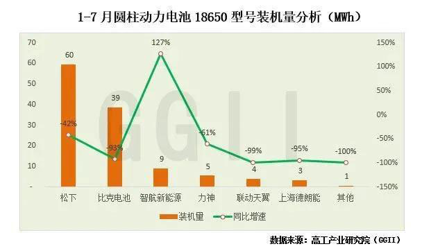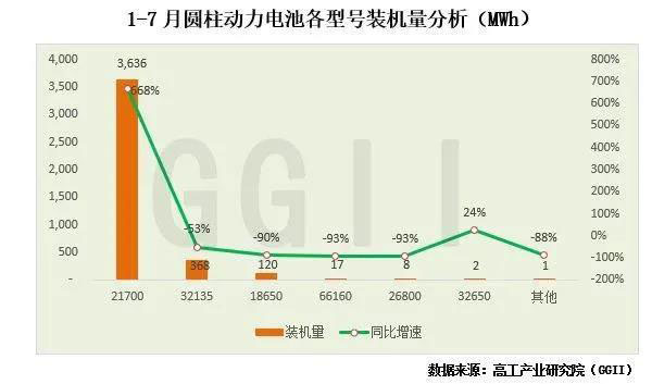 從具體型號來看,2020年1-7月圓柱動力電池21700裝機量約3.64GWh,同比增長668%。