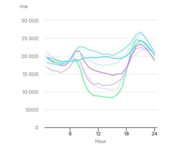本次執(zhí)行大規(guī)模輪流停電的加州電網(wǎng)運營商——加州獨立系統(tǒng)運營商(CAISO)承擔加州80%的電力運營。該企業(yè)早年就針對可再生能源發(fā)電提出了“鴨子曲線”圖。該曲線證明,光伏發(fā)電導(dǎo)致的波動會影響電網(wǎng)調(diào)控能力,在沒有充足的陽光時,還需以其他發(fā)電方式來彌補。