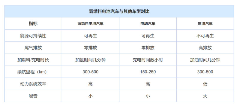 再看看燃料電池汽車的優(yōu)勢(shì)。氫燃料電池汽車(Fuel Cell Vehicle,F(xiàn)CV),簡(jiǎn)而言之就是以燃料電池產(chǎn)生的電能為驅(qū)動(dòng)力的新型電動(dòng)汽車。相比傳統(tǒng)汽車,F(xiàn)CV具有對(duì)環(huán)境零污染,加氫只需幾分鐘,續(xù)航里程足以滿足用戶需求。僅從產(chǎn)品本身來看,F(xiàn)CV優(yōu)勢(shì)十分突出。