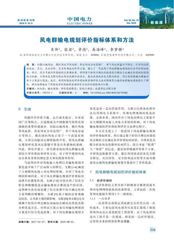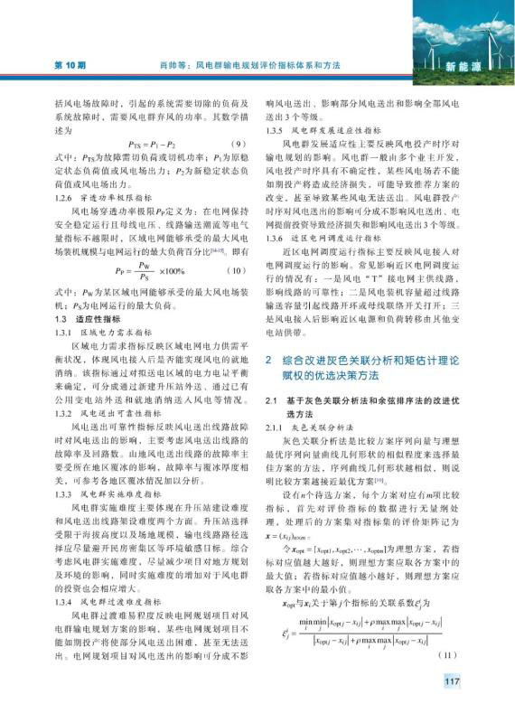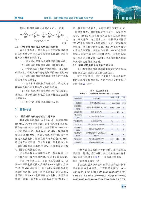 內(nèi)陸山地風(fēng)電、湖區(qū)風(fēng)電等風(fēng)電群,具有風(fēng)電分布范圍廣、單個(gè)風(fēng)電容量小等特點(diǎn)。針對風(fēng)電群的送出,首先,從經(jīng)濟(jì)性、安全性和適應(yīng)性等方面,建立了一套適用于風(fēng)電群輸電規(guī)劃的綜合評價(jià)指標(biāo)體系;然后,綜合考慮評價(jià)指標(biāo)的主客觀權(quán)重,利用基于矩估計(jì)理論的最優(yōu)組合賦權(quán)方法確定各指標(biāo)的最優(yōu)組合權(quán)值,并將灰色關(guān)聯(lián)分析法和余弦排序法結(jié)合,提出改進(jìn)的灰色關(guān)聯(lián)分析法,用以更加準(zhǔn)確合理地對各個(gè)方案進(jìn)行優(yōu)選;最后,利用所提出的評價(jià)指標(biāo)體系和評價(jià)方法對湖南某山地風(fēng)電群輸電規(guī)劃進(jìn)行了研究。研究結(jié)果驗(yàn)證了所提出評價(jià)指標(biāo)體系和評價(jià)方法的有效性和可行性。