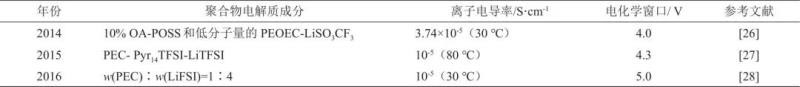 聚碳酸乙烯酯(PEC)基全固態(tài)聚合物電解質(zhì)的電化學(xué)性能,如表3所示。