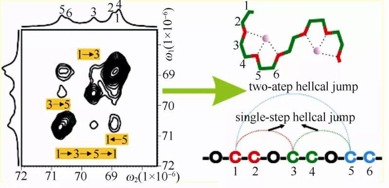 為深刻理解全固態(tài)聚合物電解質(zhì)結(jié)構(gòu)與電化學(xué)性能的構(gòu)效關(guān)系,科學(xué)家對聚環(huán)氧乙烷基全固態(tài)聚合物電解質(zhì)的離子傳導(dǎo)機理,電極/聚合物電解質(zhì)界面性質(zhì)以及聚合物與導(dǎo)電鹽相互作用等相關(guān)基礎(chǔ)問題進行了研究。1993年,BRUCE等利用DSC、NMR、交流阻抗譜等技術(shù)研究發(fā)現(xiàn)鋰離子在 PEO 晶相中是可以發(fā)生遷移的(圖1)。之后,華東師范大學(xué)CHEN等通過高分辨C13二維交叉固態(tài)核磁共振技術(shù)證實,離子在PEO晶相中的定向遷移伴隨著兩個過程,一是伴隨離子遷移的聚合物分子鏈段的局部運動;另一個則是離子運動伴隨著離子配位位置在聚合物鏈內(nèi)和鏈間的變換。美國猶他大學(xué)SMITH等通過分子動力學(xué)模擬證實離子傳導(dǎo)主要在 PEO無定形區(qū)域內(nèi)進行,一個Li+約與五個醚氧原子發(fā)生配位作用,且Li+的傳輸與PEO鏈段的局域松弛密切相關(guān)。最近,美國佛羅里達州國家強磁場實驗室的HU等通過選擇性同位素標(biāo)記高分辨固態(tài)核磁技術(shù)研究了Li+的局域結(jié)構(gòu)環(huán)境,并追蹤到Li+在PEO/鋰鑭鋯氧(LLZO)復(fù)合固態(tài)電解質(zhì)中的遷移路徑,這有利于我們更深刻地洞察復(fù)合全固態(tài)電解質(zhì)的離子傳輸機制。