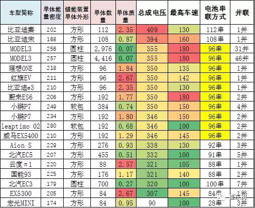 三元電池的單體能量密度的差異巨大,從160瓦時(shí)/千克到-280瓦時(shí)/千克的電池差異較大。