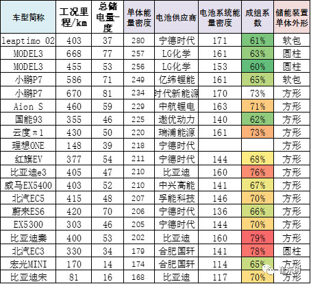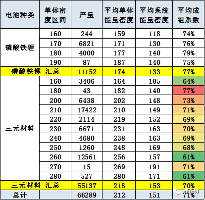 三元電池的成組率差異較大,部分高能量密度的成組率僅有61%,因此系統(tǒng)能量密度的表現(xiàn)較好。