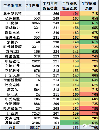 乘用車(chē)的單體平均密度212瓦時(shí)/千克,但成組后是151瓦時(shí)/千克,與客車(chē)相近,原因是成組率較低,僅有71%。