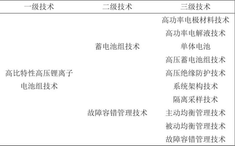 表1 高比特性高壓鋰離子電池組技術(shù)譜系