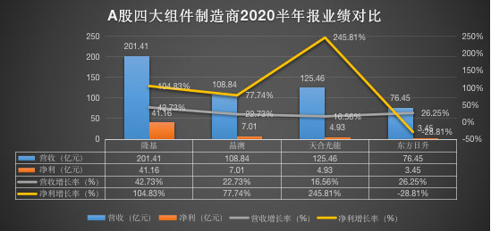 8月底,A股上市企業(yè)陸續(xù)發(fā)布2020業(yè)績報(bào)告。隆基、晶澳、天合光能、東方日升四大組件制造商半年報(bào)集中發(fā)布,一起來看看究竟誰更勝一籌吧。