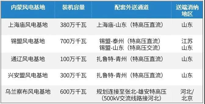 隨著包括內(nèi)蒙古在內(nèi)的三北地區(qū)的棄風(fēng)加劇,2017年,能源局緊急叫?!叭薄憋L(fēng)電建設(shè),明確內(nèi)蒙古、黑龍江、吉林等六省為風(fēng)電開發(fā)建設(shè)紅色預(yù)警區(qū)域,停止新增風(fēng)電裝機(jī)核準(zhǔn),同時積極推進(jìn)能源局規(guī)劃的大氣污染防治行動計(jì)劃12條重點(diǎn)輸電通道建設(shè),12條輸電通道中有5條均為從內(nèi)蒙古送出的特高壓通道,分別是2016年投運(yùn)的錫盟—山東與蒙西—天津南特高壓交流工程,2017年投運(yùn)的錫盟-泰州特高壓直流工程,2018年投運(yùn)的扎魯特-青州特高壓直流工程,及2019年投運(yùn)的上海廟-山東特高壓直流工程。