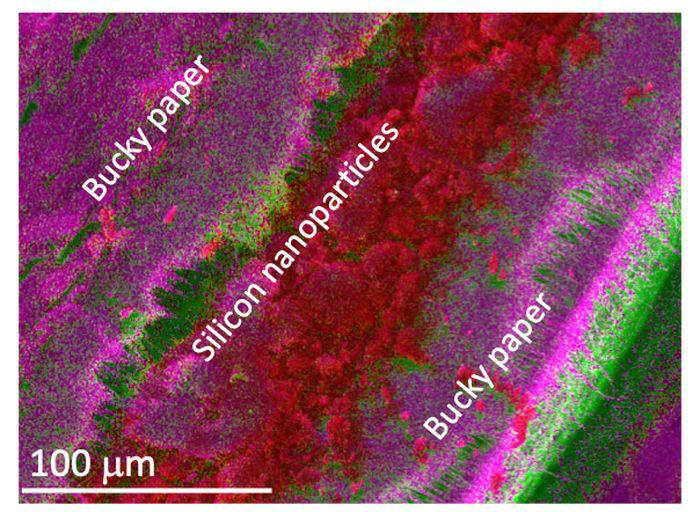 來自來自克萊姆森大學(xué)的科研團隊希望借助名為“Buckypaper”的碳納米管薄片來加強硅的可靠性,這種碳納米管薄片被用于開發(fā)下一代飛機的隔熱罩。這些薄片與微小的、納米級的硅顆粒配對,團隊稱這種排列方式很像一副牌,硅顆粒夾在每層牌之間。