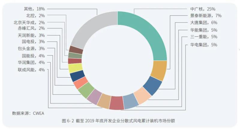 圖6- 2 截至2019 年底開發(fā)企業(yè)分散式風電累計裝機市場份額