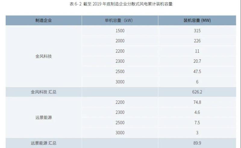 表6- 2 截至2019 年底制造企業(yè)分散式風電累計裝機容量