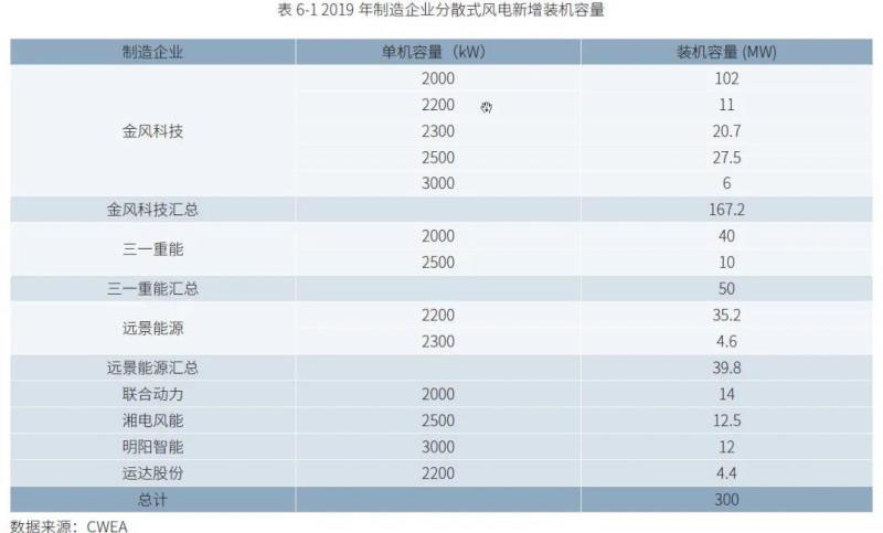 表6-1 2019 年制造企業(yè)分散式風電新增裝機容量
