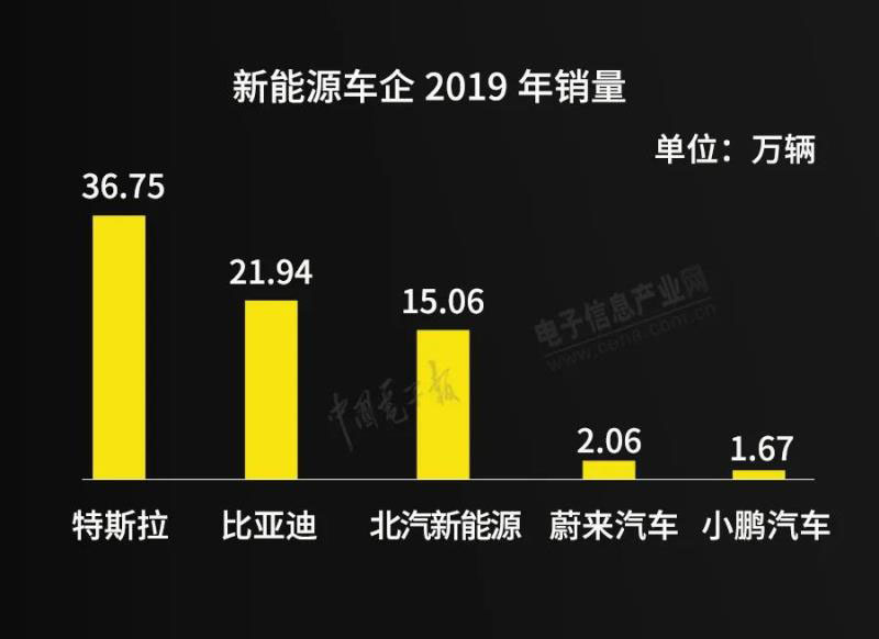 讓我們看一下其他新能源車企2019年的銷量情況。