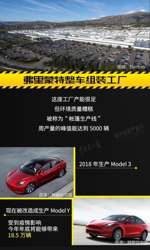 這座工廠被稱為“帳篷生產(chǎn)線”,周產(chǎn)量的峰值能達到5000輛,這條生產(chǎn)線產(chǎn)能很足,但環(huán)境質(zhì)量糟糕,設(shè)施和廠房標(biāo)準(zhǔn)都達不到規(guī)定要求,風(fēng)、水、電、氣以及暖通、安防設(shè)施等鋪設(shè)以及環(huán)保驗收等工作都沒有進行。這條生產(chǎn)線從2018年生產(chǎn) Model 3,現(xiàn)在被改造成生產(chǎn)Model Y的產(chǎn)線。受到疫情影響,今年年底將能夠帶來18.5萬輛。