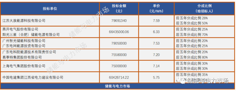 近日,招投標(biāo)網(wǎng)站發(fā)布了該項目的開標(biāo)結(jié)果。包括江蘇大族能源科技有限公司在內(nèi)的9家單位單獨(dú)或者以聯(lián)合體的形式提交了投標(biāo)文件。單位報價最低5.75元/Wh,最高7.59元/Wh。
