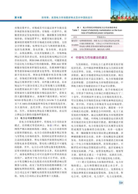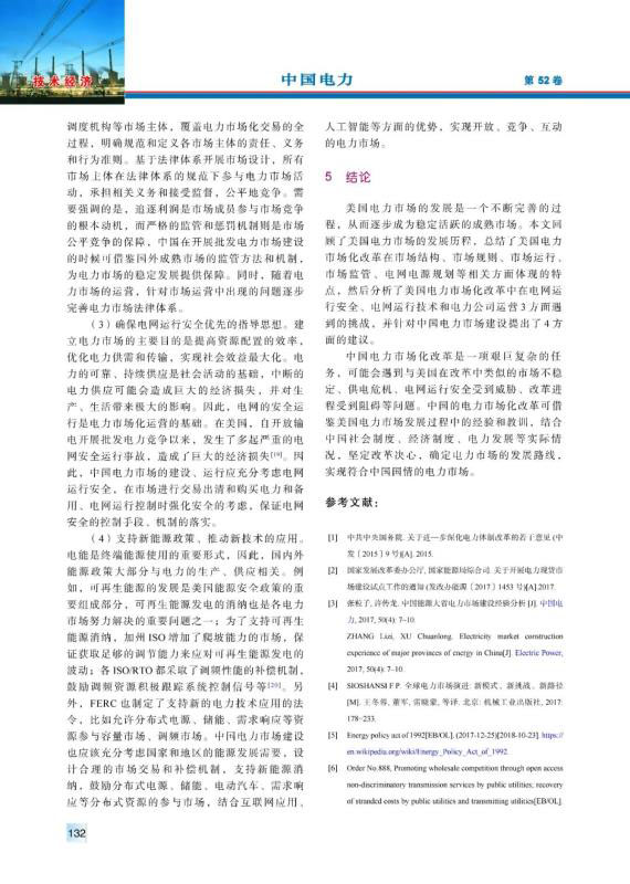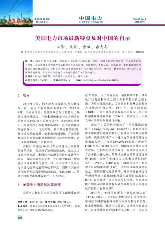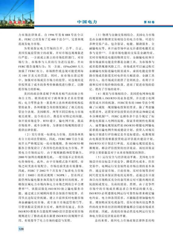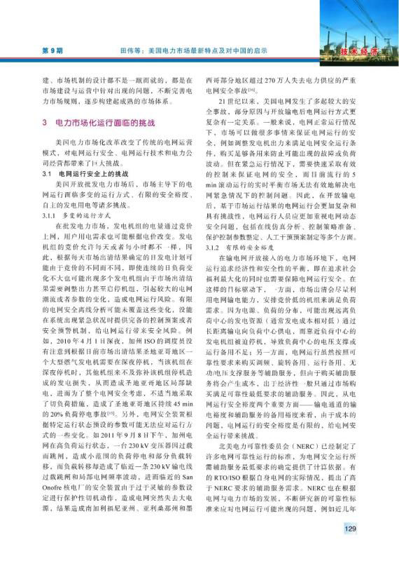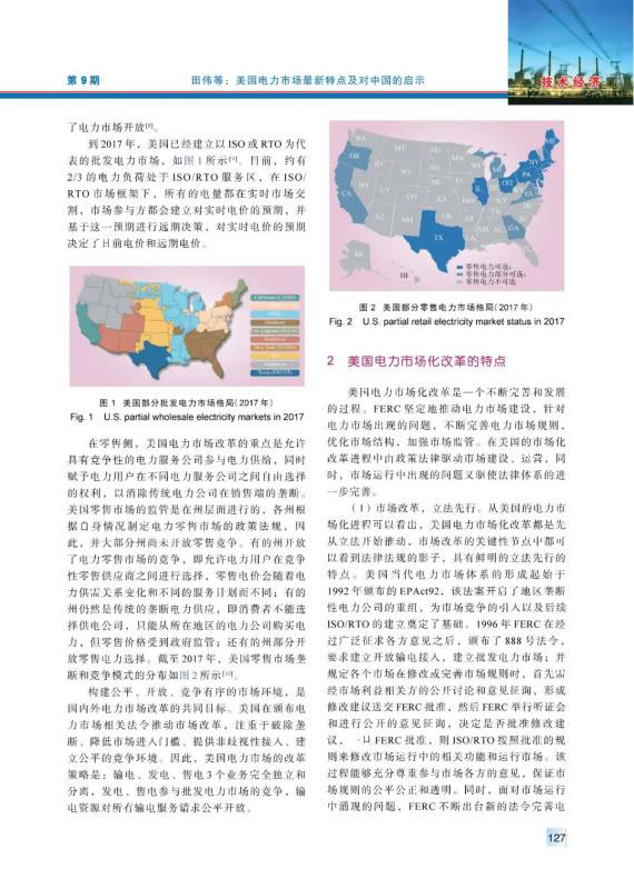20世紀(jì)90年代以來,美國電力市場(chǎng)經(jīng)過不斷完善、發(fā)展,逐漸發(fā)展成運(yùn)營穩(wěn)定、交易活躍的電力市場(chǎng)。總結(jié)梳理了美國電力市場(chǎng)化改革在市場(chǎng)結(jié)構(gòu)、市場(chǎng)規(guī)則、市場(chǎng)運(yùn)行、市場(chǎng)監(jiān)管、電網(wǎng)電源規(guī)劃等相關(guān)方面的最新特點(diǎn),分析了美國電力市場(chǎng)化改革中在電網(wǎng)運(yùn)行安全、電網(wǎng)運(yùn)行技術(shù)和電力公司運(yùn)營3方面面臨的挑戰(zhàn),并且針對(duì)中國電力市場(chǎng)建設(shè)提出了4方面的建議。