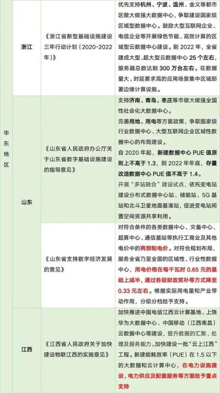 國(guó)內(nèi)部分省(區(qū)、市)數(shù)據(jù)中心相關(guān)政策列表