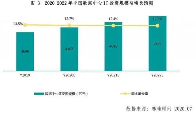 圖3 2020-2022年中國(guó)數(shù)據(jù)中心IT投資規(guī)模與增長(zhǎng)預(yù)測(cè)