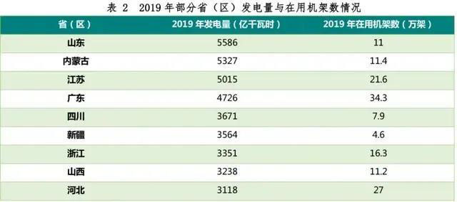 表2 2019年部分?。▍^(qū))發(fā)電量與在用機(jī)架數(shù)情況