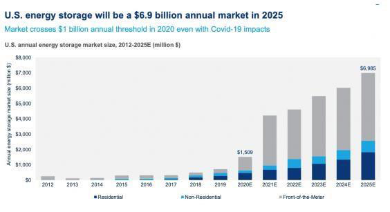 美國到2025年儲能市場規(guī)模將達到69億美元