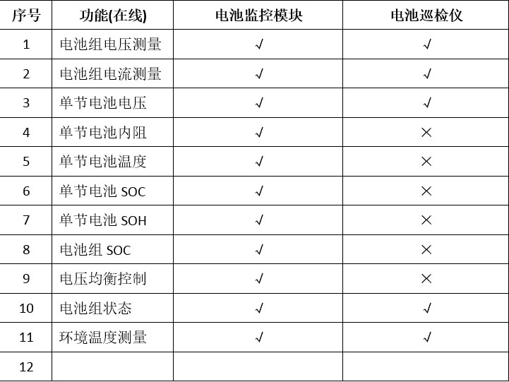 另外,在一些常見的后備電源系統(tǒng)中,有可能會配備傳統(tǒng)的電池巡檢儀。電池巡檢儀雖然也能在線測量,但它主要測量點(diǎn)對象是單體電池電壓,而蓄電池的內(nèi)阻、溫度、SOC和SOH這些核心參數(shù),卻無法及時(shí)得到體現(xiàn)。如下圖: