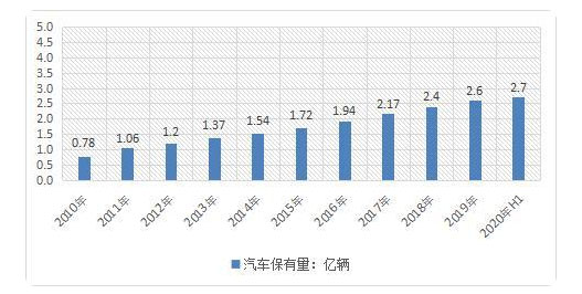 2010年以來我國汽車保有量走勢圖