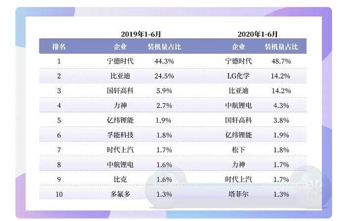 以今年上半年的數(shù)據(jù)為例,在全球動力電池市場份額中,松下和LG化學(xué)已開始反超寧德時代,分別位列第一、第二位;國內(nèi)動力電池裝機(jī)量中,LG化學(xué)和松下在今年上半年闖入前十名,其中LG化學(xué)甚至還擠下了比亞迪,位居第二。