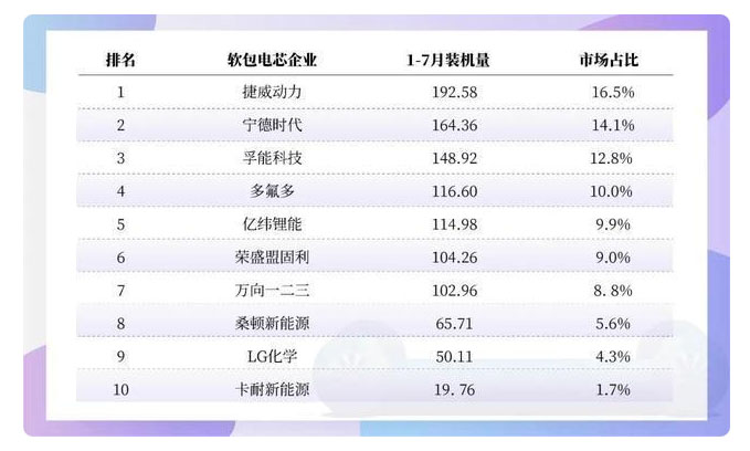 2020年上半年的軟包電池裝機(jī)量排行榜,孚能電池首度跌落第一寶座,滑至第三位,被捷威動力、寧德時代反超。