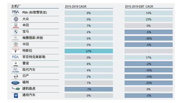 圖1 | 2015-2019部分主機(jī)廠營(yíng)收情況變化(來(lái)源:車(chē)百智庫(kù)、羅蘭貝格)
