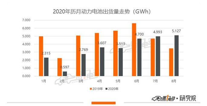 根據(jù)工信部合格證產(chǎn)量數(shù)據(jù),2020年8月共產(chǎn)出新能源汽車105,614輛,環(huán)比增長10.3%。根據(jù)第一電動研究院的統(tǒng)計測算,動力電池2020年8月裝機(jī)量約為5.13GWh,同比增長47.8%,實現(xiàn)連續(xù)兩月的正增長,環(huán)比也同樣上漲了2.7%。