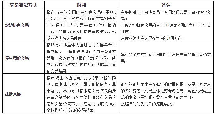 年度市場(chǎng)交易分為年度雙邊協(xié)商交易、年度集中競(jìng)價(jià)交易和年度掛牌交易三種方式,于每年12月初組織開(kāi)展下一年的年度市場(chǎng)交易。
