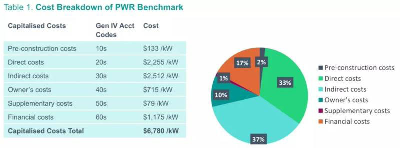 以美國(guó)的標(biāo)準(zhǔn)壓水堆(PWR)為參照,其投資總成本為6780美元/千瓦: