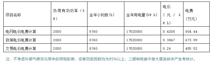 通過表格可以看出,2MW有功用電的數(shù)據(jù)中心,在參加內(nèi)蒙古多邊電力交易下:交易電價(jià)比正常電網(wǎng)電價(jià)每年節(jié)約資金348.92萬元,100MW有功功率規(guī)模的數(shù)據(jù)中心每年可節(jié)約電費(fèi)17446萬元;交易電價(jià)比政策電價(jià)每年節(jié)省218.47萬元, 100MW有功功率規(guī)模的數(shù)據(jù)中心每年節(jié)約電費(fèi)10924萬元。