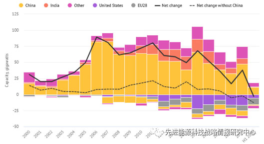 1、全球燃煤發(fā)電裝機(jī)容量出現(xiàn)首次下降