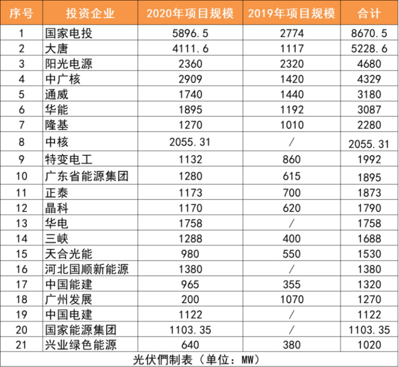 另一方面,以國家電投、大唐、中廣核、中核、華電、華能、國家能源集團為代表的央企獲批規(guī)?;揪尸F(xiàn)出翻倍增長的勢頭,尤其是大唐、中核、華電這三家2020年項目獲批規(guī)模暴增,成為當之無愧的“黑馬”。值得一提的是,此前不少專注于水電、風電項目開發(fā)的投資商、設計院等也在將目光轉向光伏電站,例如風電巨無霸國家能源集團也在2020年開啟了光伏電站投資之旅,并且計劃在“十四五”期間加大光伏投資力度。