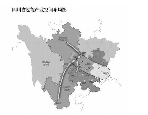在空間布局方面,我省將圍繞成渝地區(qū)雙城經(jīng)濟(jì)圈建設(shè)的戰(zhàn)略部署,按照省委 “一干多支、五區(qū)協(xié)同”發(fā)展要求,以各地自然資源稟賦及現(xiàn)有氫能相關(guān)產(chǎn)業(yè)為基礎(chǔ),遵循合理配置、重點(diǎn)突出、有序協(xié)同、互聯(lián)互通的原則,形成“一軸、一港、一區(qū)、三路”的“1113”發(fā)展格局。