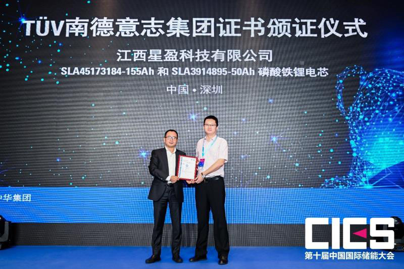9月24-26日,由中國化學(xué)與物理電源行業(yè)協(xié)會(huì)主辦、TüV南德意志集團(tuán)(以下簡(jiǎn)稱“TüV南德”)聯(lián)合主辦、中國化學(xué)與物理電源行業(yè)協(xié)會(huì)儲(chǔ)能應(yīng)用分會(huì)、中國儲(chǔ)能網(wǎng)承辦的第十屆中國國際儲(chǔ)能大會(huì)在深圳鵬瑞萊佛士酒店隆重召開。本屆儲(chǔ)能盛會(huì)吸引了全球儲(chǔ)能行業(yè)的眾多領(lǐng)軍企業(yè)。9月25日,在儲(chǔ)能安全、標(biāo)準(zhǔn)與檢測(cè)分會(huì)場(chǎng)上,TüV南德為江西星盈科技有限公司(以下簡(jiǎn)稱“星盈科技”)的兩款磷酸鐵鋰電芯SLA45173184-155Ah 和 SLA3914895-50Ah頒發(fā)TüV SüD認(rèn)證證書。TüV南德大中華集團(tuán)智慧能源事業(yè)部副總裁許海亮、星盈科技研究院常務(wù)副院長(zhǎng)婁忠良等一席嘉賓出席了該頒證儀式。該證書的獲得,表明星盈科技的這兩款高性能電芯符合了國際儲(chǔ)能電芯安全要求,為企業(yè)進(jìn)一步打開歐洲、澳洲等國際市場(chǎng)奠定了良好的基礎(chǔ)。