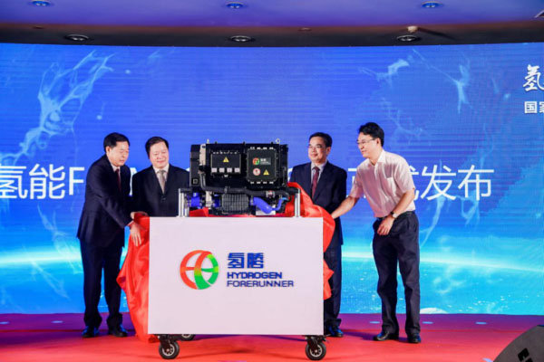 國家電投黨組成員、副總經(jīng)理劉祥民,寧波市市委常委、常務(wù)副市長陳仲朝,寧波杭州灣新區(qū)黨工委書記、管委會主任、慈溪市委書記楊勇,中國產(chǎn)促會氫能分會會長魏鎖為產(chǎn)品揭幕。