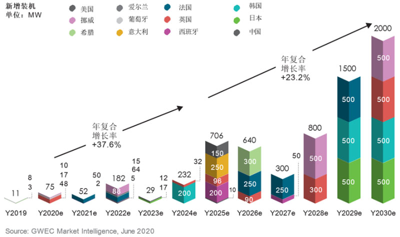 圖:2020-2030年全球漂浮式風(fēng)電新增裝機預(yù)測