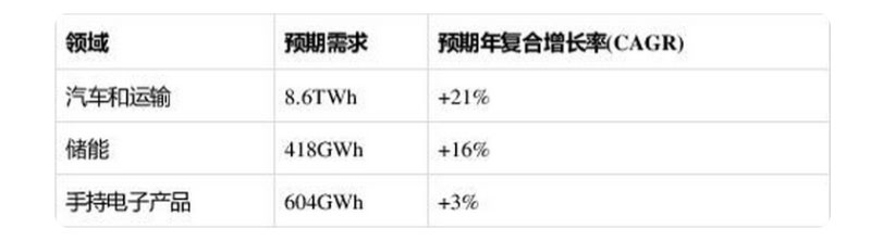 IHS Markit預(yù)計(jì),2020年-2030年間,電池需求將出現(xiàn)如下增長(zhǎng):