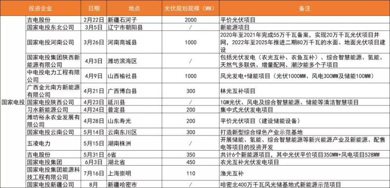 根據(jù)公開的項(xiàng)目簽約信息,國家電投集團(tuán)自2020年以來,與地方政府簽訂多個(gè)新能源項(xiàng)目,投資總額超過400億元,涉及光伏、風(fēng)電及綜合能源、氫能等項(xiàng)目,項(xiàng)目遍布新疆、遼寧、河南、山西、廣西等11個(gè)省份。截至目前,僅光伏電站項(xiàng)目簽約規(guī)模將近8GW,在簽署項(xiàng)目數(shù)量及容量方面位居榜首。