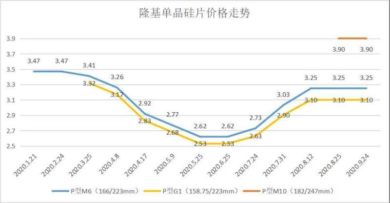 事實(shí)上,這一報(bào)價(jià)基本吻合當(dāng)前的組件價(jià)格走勢(shì),從目前產(chǎn)業(yè)鏈價(jià)格來看,相比于7-8月連續(xù)調(diào)漲的價(jià)格趨勢(shì),目前多晶硅、硅片、電池基本穩(wěn)定。單晶硅片龍頭隆基近日更新10月硅片報(bào)價(jià),M6、G1、M10價(jià)格均保持不變,電池方面,G1略有下調(diào),但M6電池受市場(chǎng)需求支撐,成交價(jià)格仍維持在0.92-0.93元/瓦。PV InfoLink分析稱,M6尺寸有四季度旺季需求的支撐、且供給尚未完全釋放,導(dǎo)致價(jià)格持續(xù)堅(jiān)挺。即使近期銀漿價(jià)格已隨國(guó)際銀價(jià)開始出現(xiàn)回落,但整體單晶電池片價(jià)格基本穩(wěn)定,在十月需求向好的狀況下、價(jià)格跌降幅度較緩,預(yù)期四季度單晶電池片價(jià)格仍有可能維穩(wěn)。