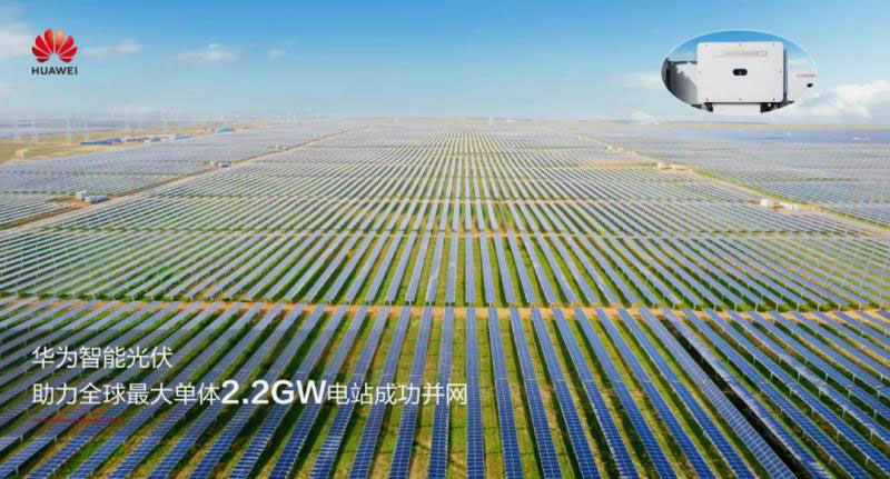 本次并網(wǎng)的2.2GW光伏項目位于青海省共和縣三塔拉,平均海拔超過3000米,包含五個標(biāo)段,共672個子陣,配套建設(shè)3座330kV升壓站,光伏板安裝總量超過700萬塊;全部采用組串逆變器,而僅華為一家就供貨1.6GW,成為份額最大且絕對領(lǐng)先的核心供應(yīng)商。