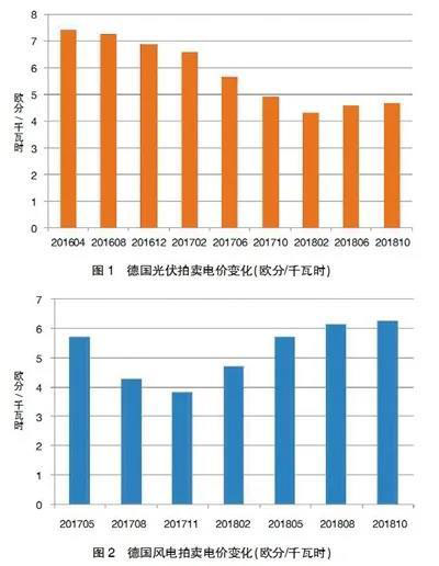 為降低能源轉(zhuǎn)型成本,德國(guó)轉(zhuǎn)變固定電價(jià)機(jī)制,對(duì)新建機(jī)組施行上網(wǎng)電價(jià)拍賣(mài)機(jī)制。在拍賣(mài)機(jī)制的影響下,德國(guó)光伏、風(fēng)電平均拍賣(mài)電價(jià)出現(xiàn)變化。