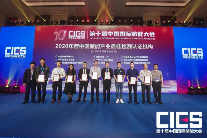 TüV南德榮膺2020年度中國儲能產(chǎn)業(yè)最佳檢測認證機構頒獎,TüV南德智慧能源事業(yè)部大中華區(qū)技術總監(jiān)邱必力先生代表領獎(左三)