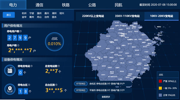 今年7月,國網(wǎng)浙江電力還針對(duì)臺(tái)風(fēng)、洪澇等自然災(zāi)害,開發(fā)了全新數(shù)據(jù)產(chǎn)品“災(zāi)害數(shù)據(jù)指南針”?!盀?zāi)害數(shù)據(jù)指南針”以每小時(shí)更新一次的頻率,直觀展現(xiàn)受災(zāi)區(qū)域居民大客戶、企業(yè)、臺(tái)區(qū)及變電站的停電數(shù)、累計(jì)停電數(shù)、累計(jì)復(fù)電數(shù)、累計(jì)停電比例、累計(jì)復(fù)電比例等指標(biāo)的實(shí)時(shí)數(shù)據(jù)及趨勢變化情況。該數(shù)據(jù)產(chǎn)品還通過浙江省政企服務(wù)平臺(tái)及政務(wù)專線送至政務(wù)網(wǎng),為政府第一時(shí)間提供受災(zāi)地區(qū)電力中斷及恢復(fù)情況,助力政府盡早作出有利的抗災(zāi)救災(zāi)決策。