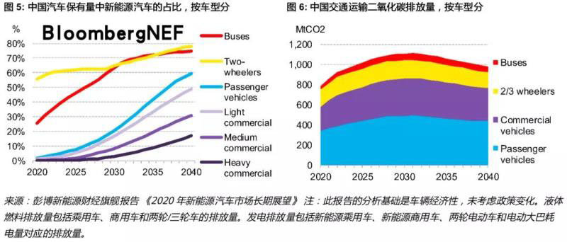 中國是全球規(guī)模最大的新能源汽車市場。彭博新能源財(cái)經(jīng)預(yù)計(jì)中國汽車電動(dòng)化水平將快速提升,來自公路交通的碳排放量有望在2031年達(dá)峰。即便如此,2040年中國公路交通碳排放量仍將比2019年的水平高出7%。為了實(shí)現(xiàn)交通運(yùn)輸業(yè)的碳中和,中國不僅需要加快新能源乘用車和氫燃料電池汽車(尤其是重型卡車)的部署,還需轉(zhuǎn)變?nèi)藛T和貨物運(yùn)輸模式,提高效率。