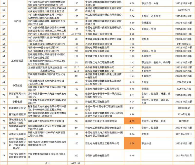 從中標(biāo)人結(jié)果來看,小EPC基本主要以中國(guó)能建和中國(guó)電建的下屬企業(yè)為主,且主要以當(dāng)?shù)氐哪芙ɑ螂娊ㄏ档淖庸緸橹饕袠?biāo)人/中標(biāo)候選人。而在大EPC項(xiàng)目,中標(biāo)人/中標(biāo)候選人較為分散,除了中國(guó)能建和中國(guó)電建的下屬企業(yè),也包括多家民營(yíng)企業(yè),例如陽光電源、特變電工、協(xié)鑫等等,實(shí)際上,這些大EPC項(xiàng)目中大多以民營(yíng)企業(yè)與央企聯(lián)合開發(fā)模式為主。