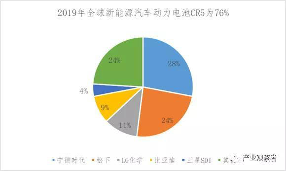 即使是近年蓬勃發(fā)展的新能源汽車,補(bǔ)貼下來(lái)后很多臨時(shí)抱佛腳的汽車整車企業(yè)已經(jīng)力不從心。我們?cè)賮?lái)看鋰電市場(chǎng)的競(jìng)爭(zhēng)狀況,這個(gè)行業(yè)規(guī)?;l(fā)展其實(shí)也不到10年,力神、比亞迪起步比較早,寧德時(shí)代通過(guò)資本運(yùn)作2011年成立了公司,等到2019年這個(gè)行業(yè)的前五名市場(chǎng)份額已經(jīng)達(dá)到76%。